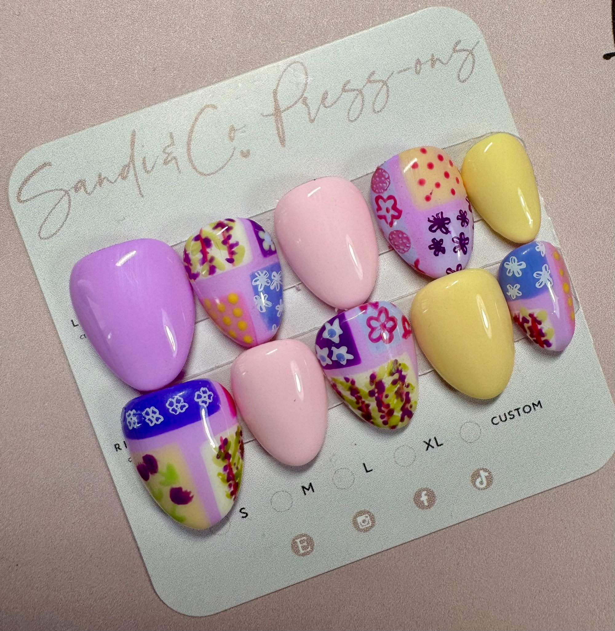 Hand painted custom sized press on nails. These nails, if properly removed can be worn over and over.