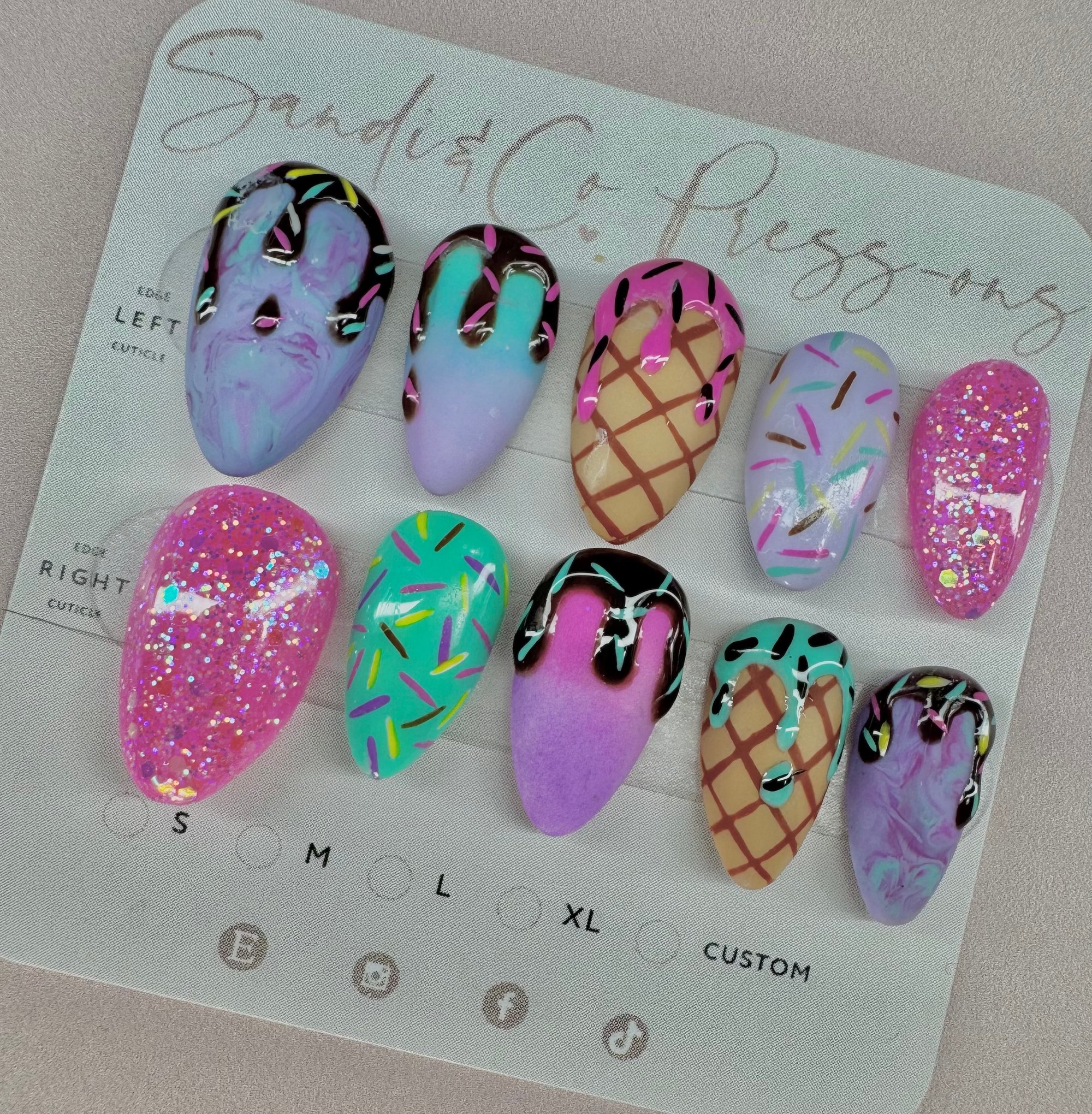 Hand painted custom sized press on nails. These nails if properly removed can be worn over and over.